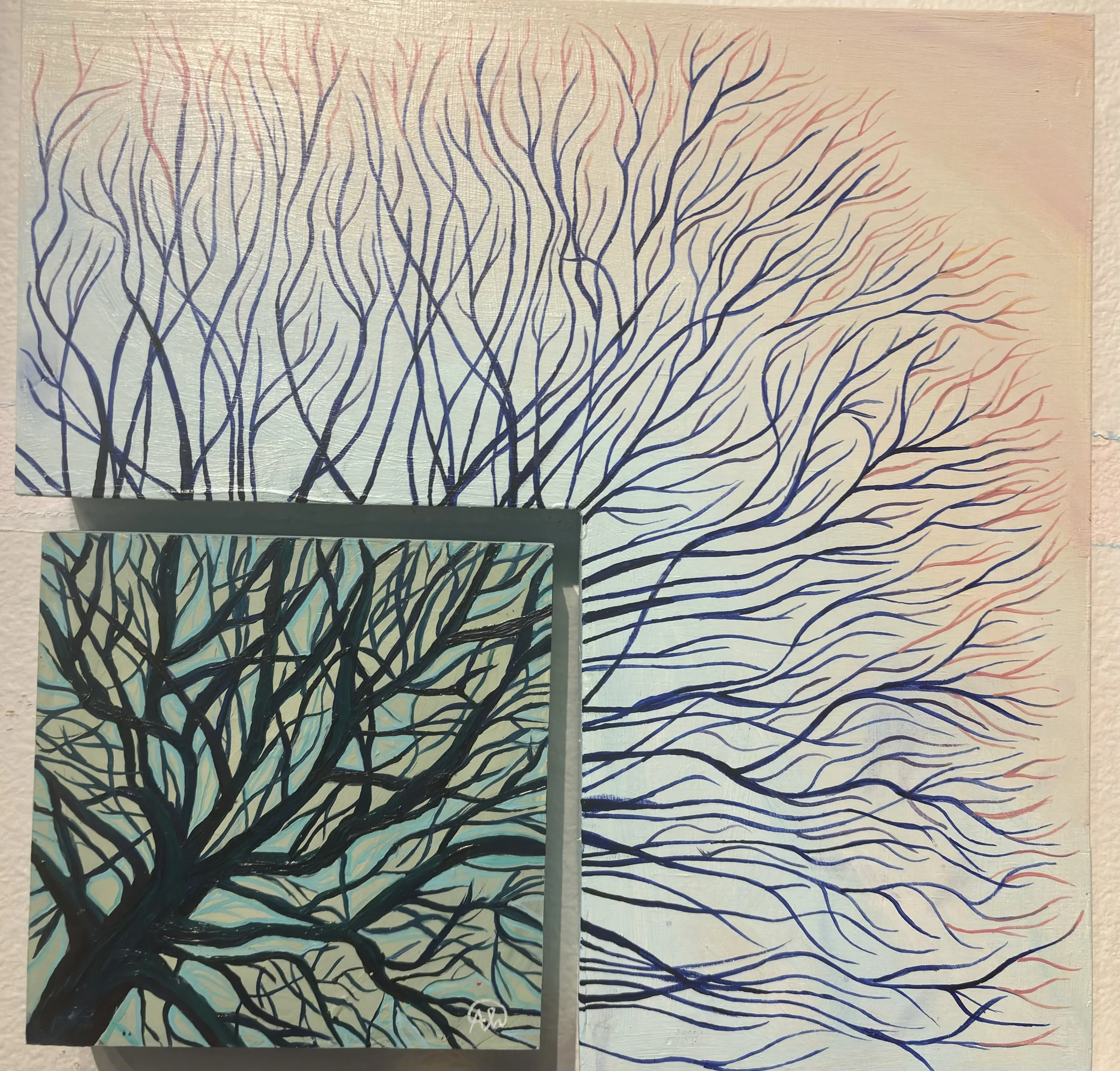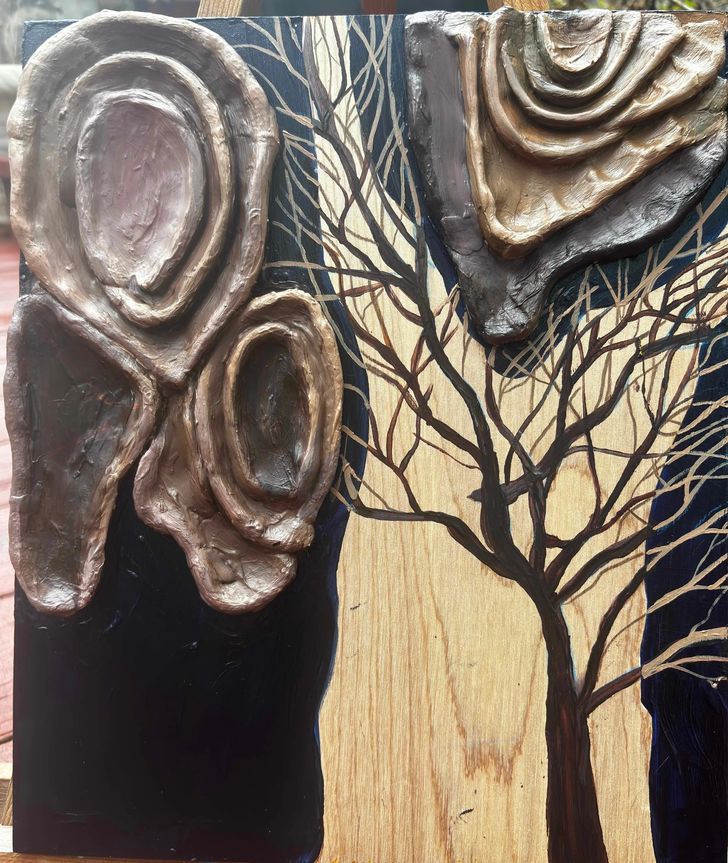 In this new collection, I blend acrylic paints and sculpted clay on wood to create powerful pieces that explore the interconnectedness between the human body and the natural world. Through the intricate imagery of branches and human nerves, I invite viewers to reflect on the striking similarities between these two organic systems—both delicate yet strong, both vital to the existence and growth of their respective environments.