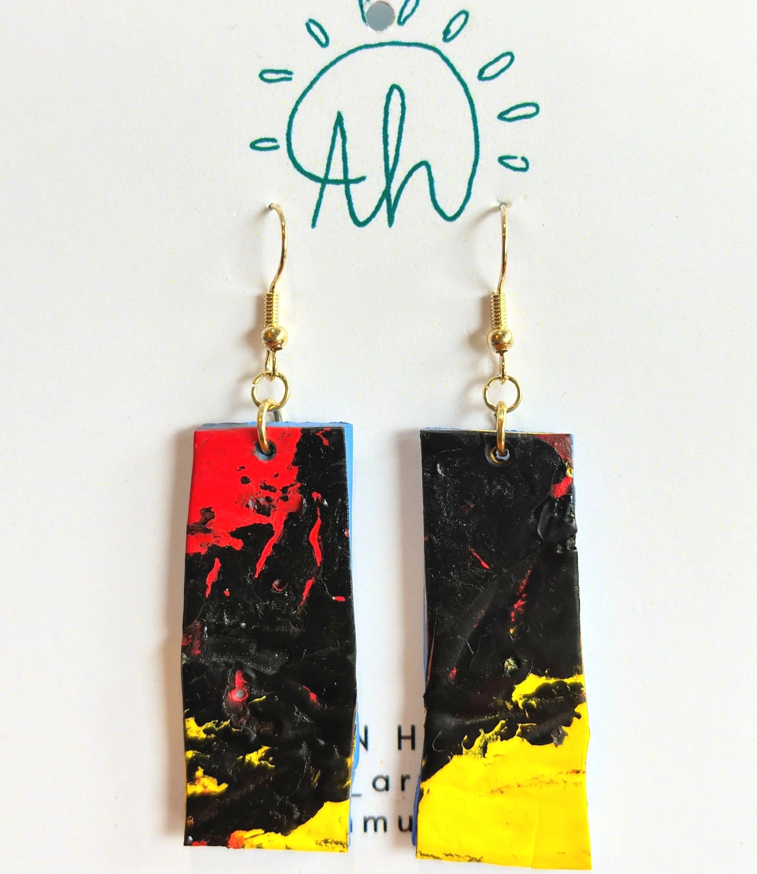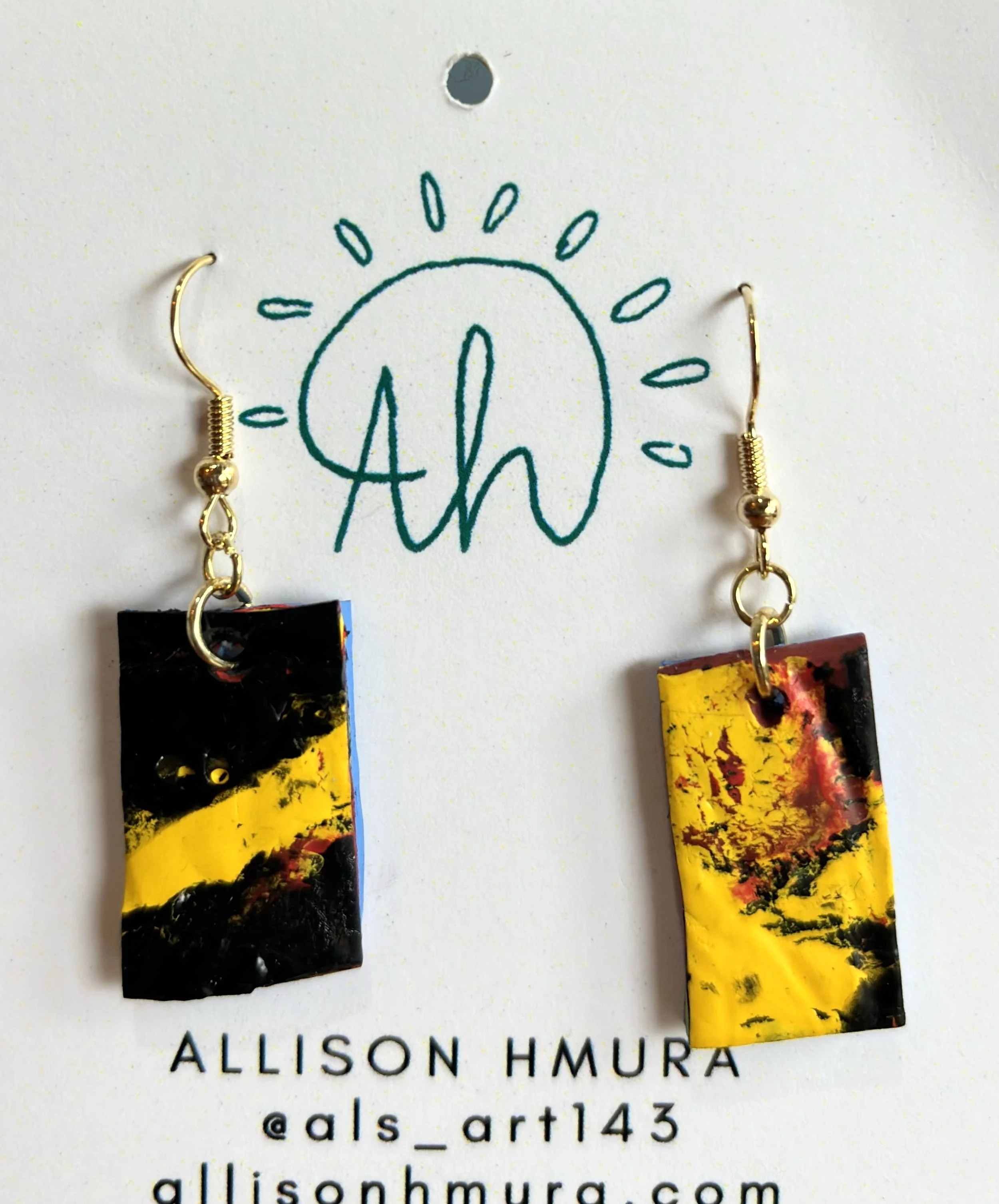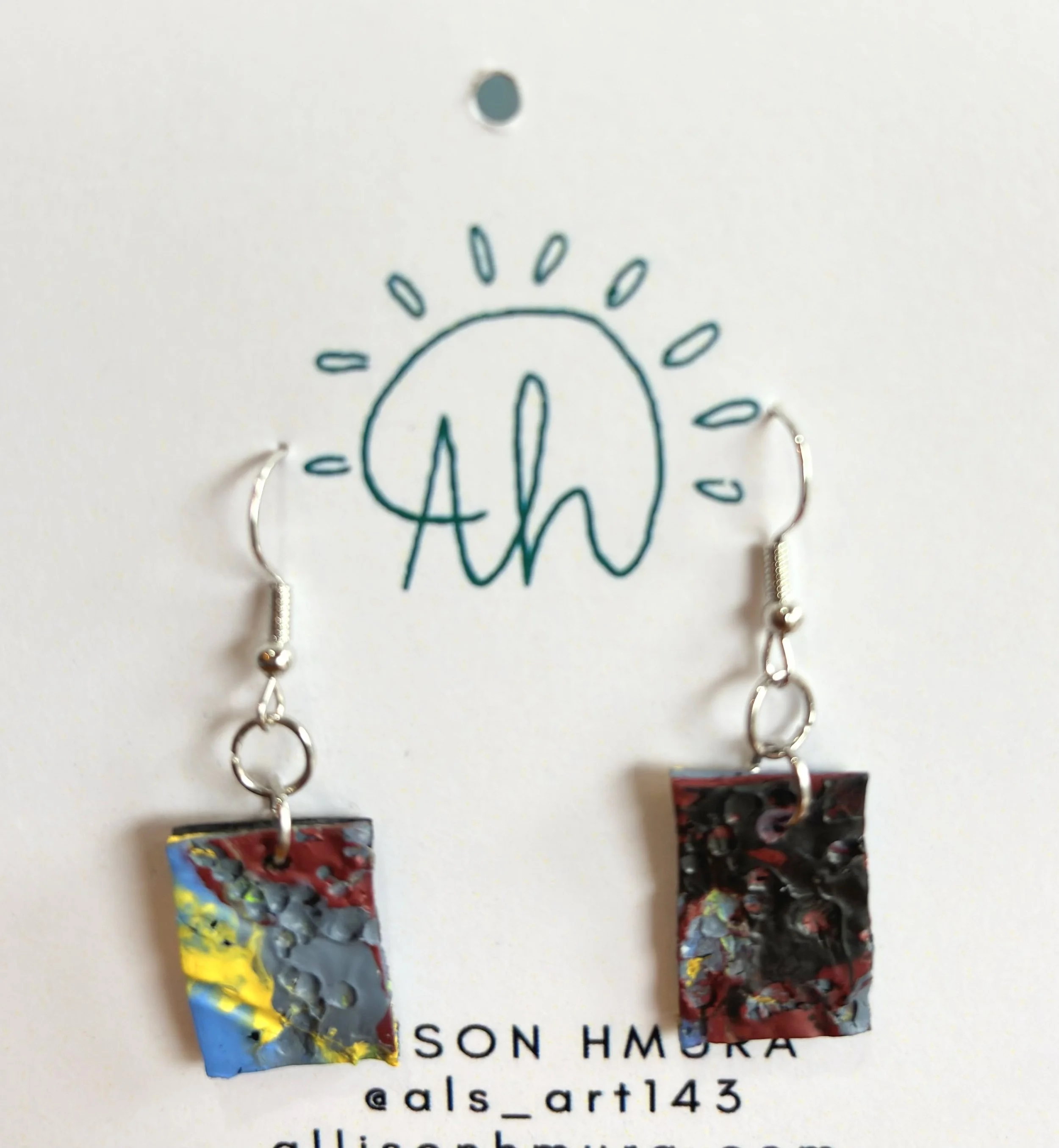 Check out my Paint Palette Earrings! Each pair is handcrafted using recycled paint palettes, making them a unique and eco-friendly accessory. These earrings are a great way to add a pop of color to any outfit while supporting sustainable art.